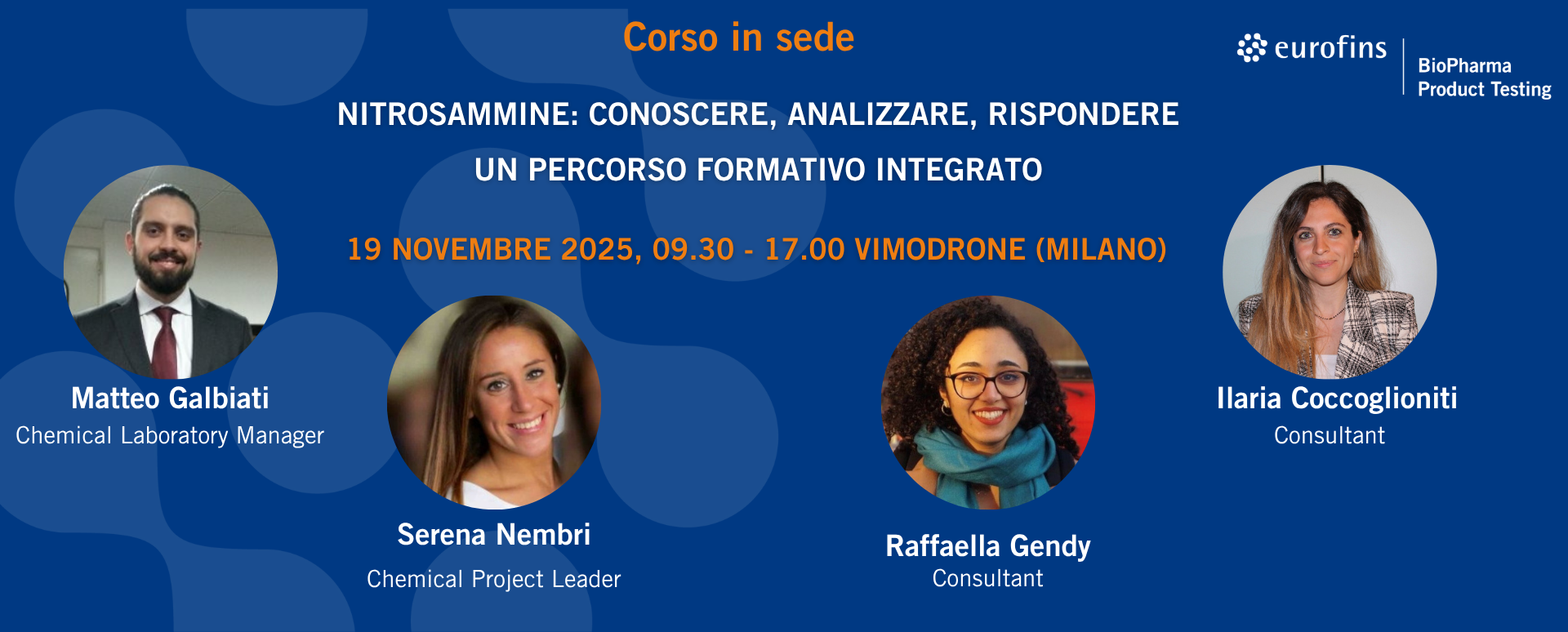 Matteo Galbiati si laurea in Chimica e Tecnologia Farmaceutiche nel 2016, presso l’Università degli Studi di Milano. Immediatamente dopo inizia la sua esperienza come analista di laboratorio nella divisione Farmaceutica di Eurofins BioPharma Product Testing Italy (Biolab), nel gruppo di Messa a Punto e Convalida di metodi analitici. Dopo circa un anno diventa Project Leader del gruppo, già profondamente focalizzato sulle Nitrosammine e le attività in LC-MS.